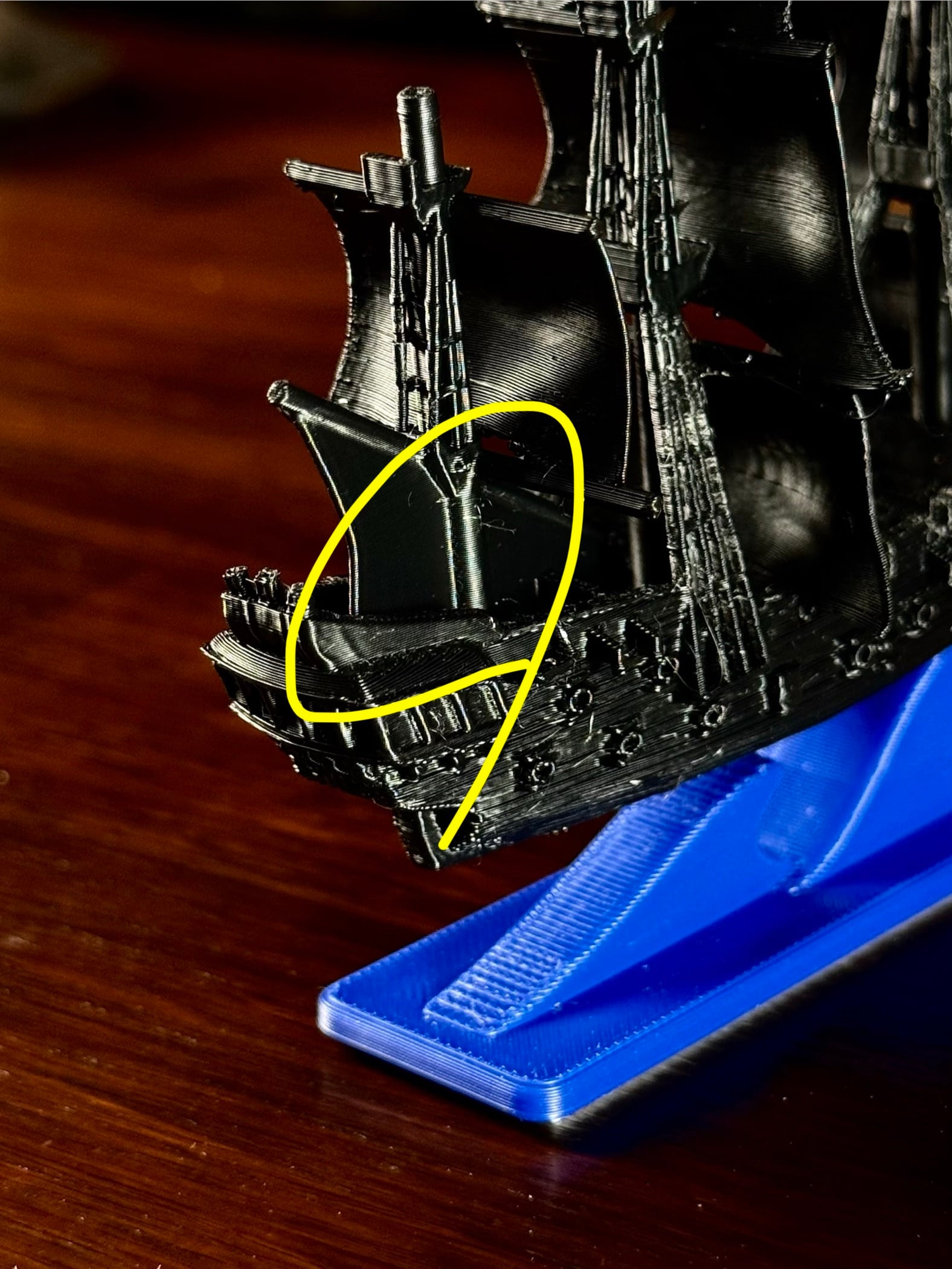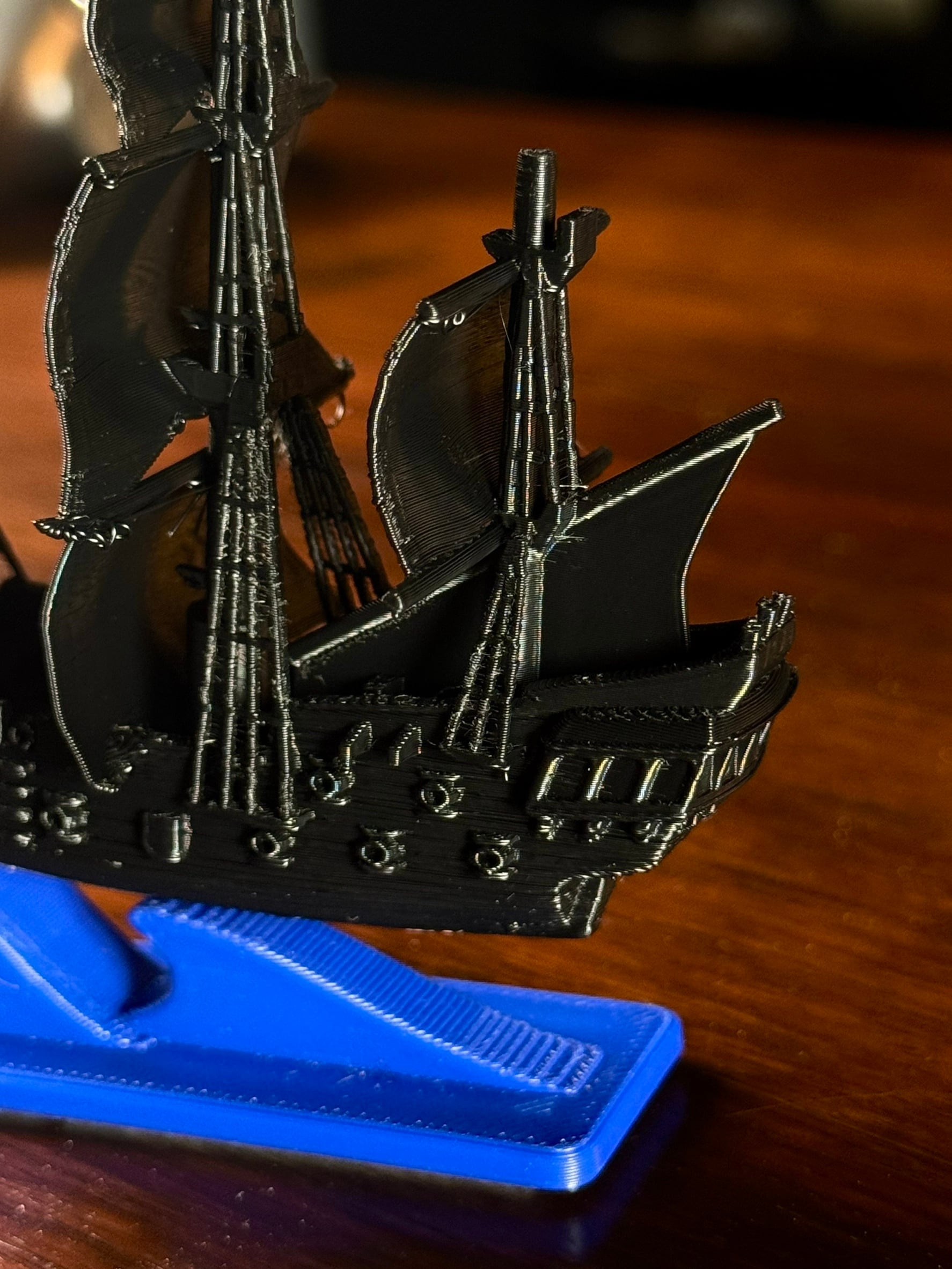 帆のロープ部分にわずかなダメージが残っていますが、その姿こそが航海の証。遠目ではほとんど分からず、ディスプレイとしての印象や完成度、機能に影響はありません。